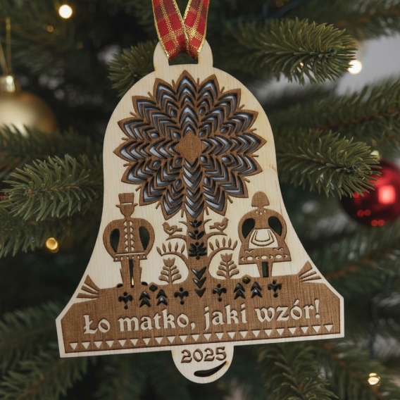 Wykonana z naturalnej sklejki o grubości 4 mm, łączy w sobie tradycję, elegancję i nowoczesny design. To wyjątkowa ozdoba świąteczna inspirowana wzorami ludowymi z regionu kurpiowskiego, wykonana techniką precyzyjnego cięcia laserowego i grawerowania.