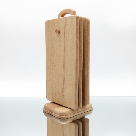 Małe Deski do Krojenia w Stojaku | Zestaw 4 Deseczek Bukowych