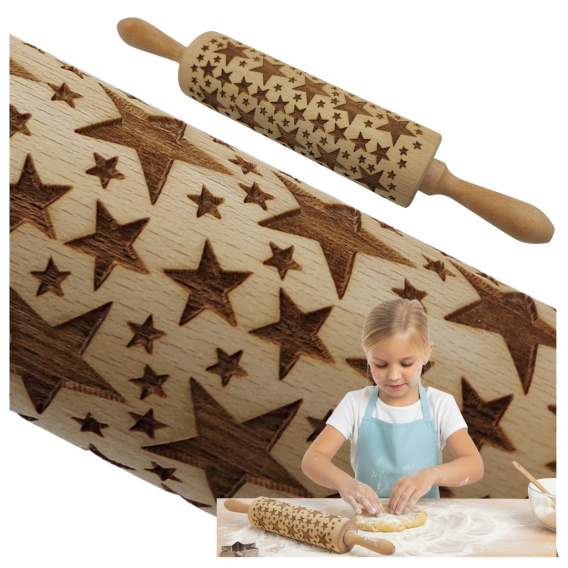 Wałek drewniany obrotowy bukowy z wzorem gwiazdek
